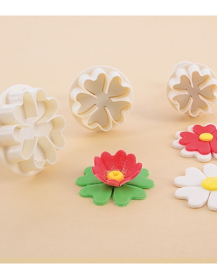 Kit composé par trois découpoirs, emportes-pièces à ressort. Ils permettent de réaliser des dessins en 3D en forme de fleurs.