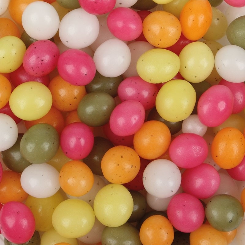 Assortiment d'oeufs multicolores dragéifiés de petite taille.