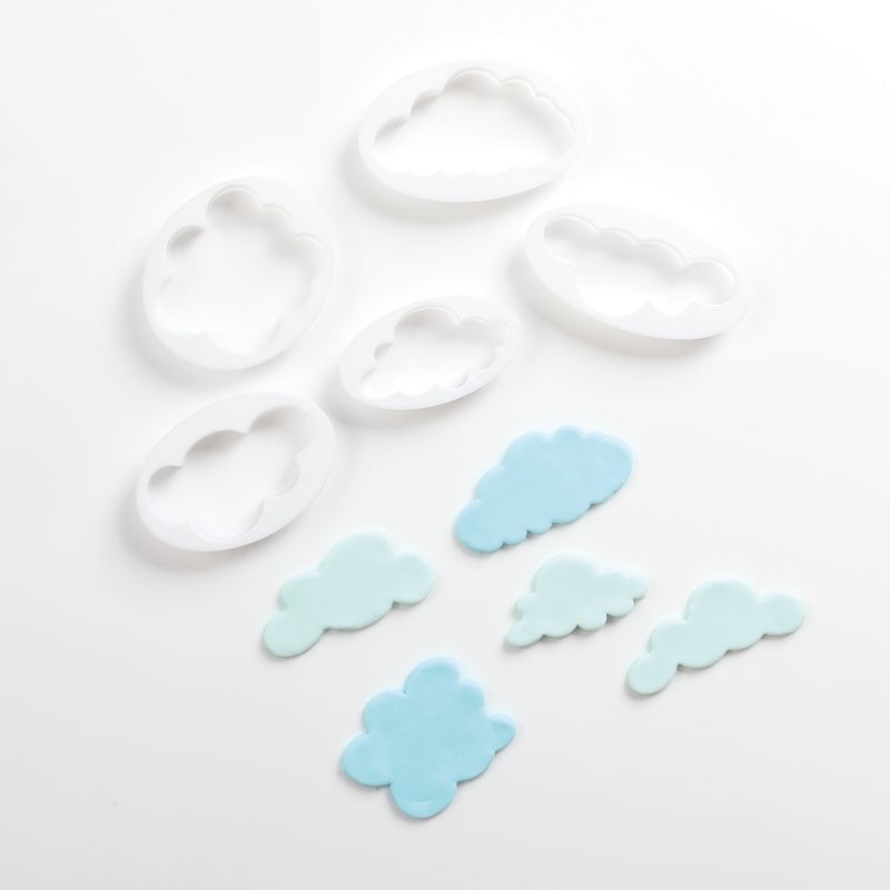 Kit composé de cinq découpoirs - emporte-pièces permettant de réaliser des formes de nuages.